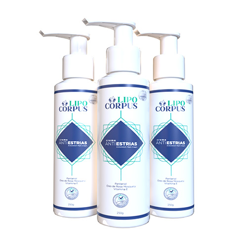 O Creme Anti-Estrias Lipo Corpus possui composição rica em ativos hidratantes e regeneradores da pele.